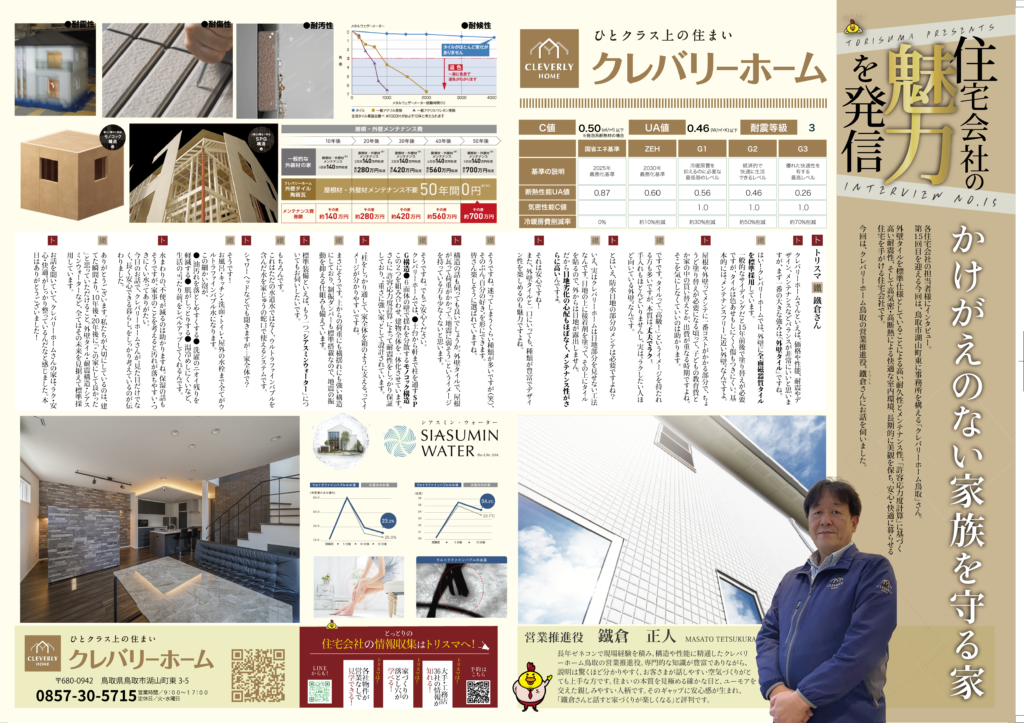 各住宅会社の担当者様へインタビューを行い、その魅力に迫る連載企画。 第15回目は、鳥取市湖山町にて事務所を構える「クレバリーホーム鳥取」さんです。